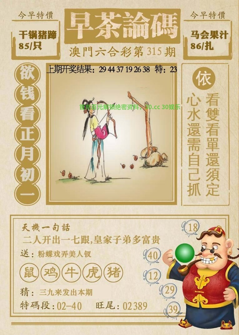 315期:家野两肖〖野兽+牛鸡〗开:虎04准